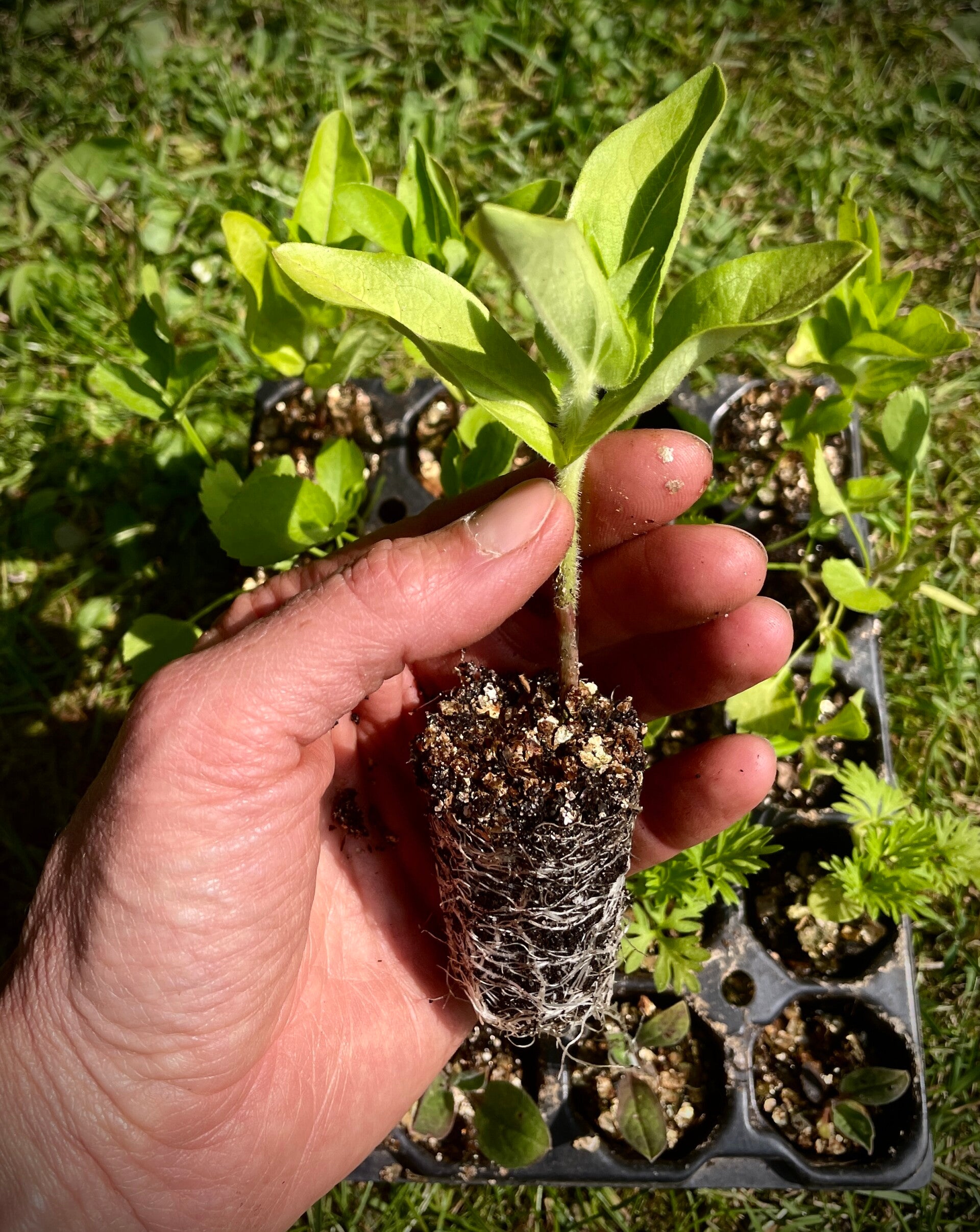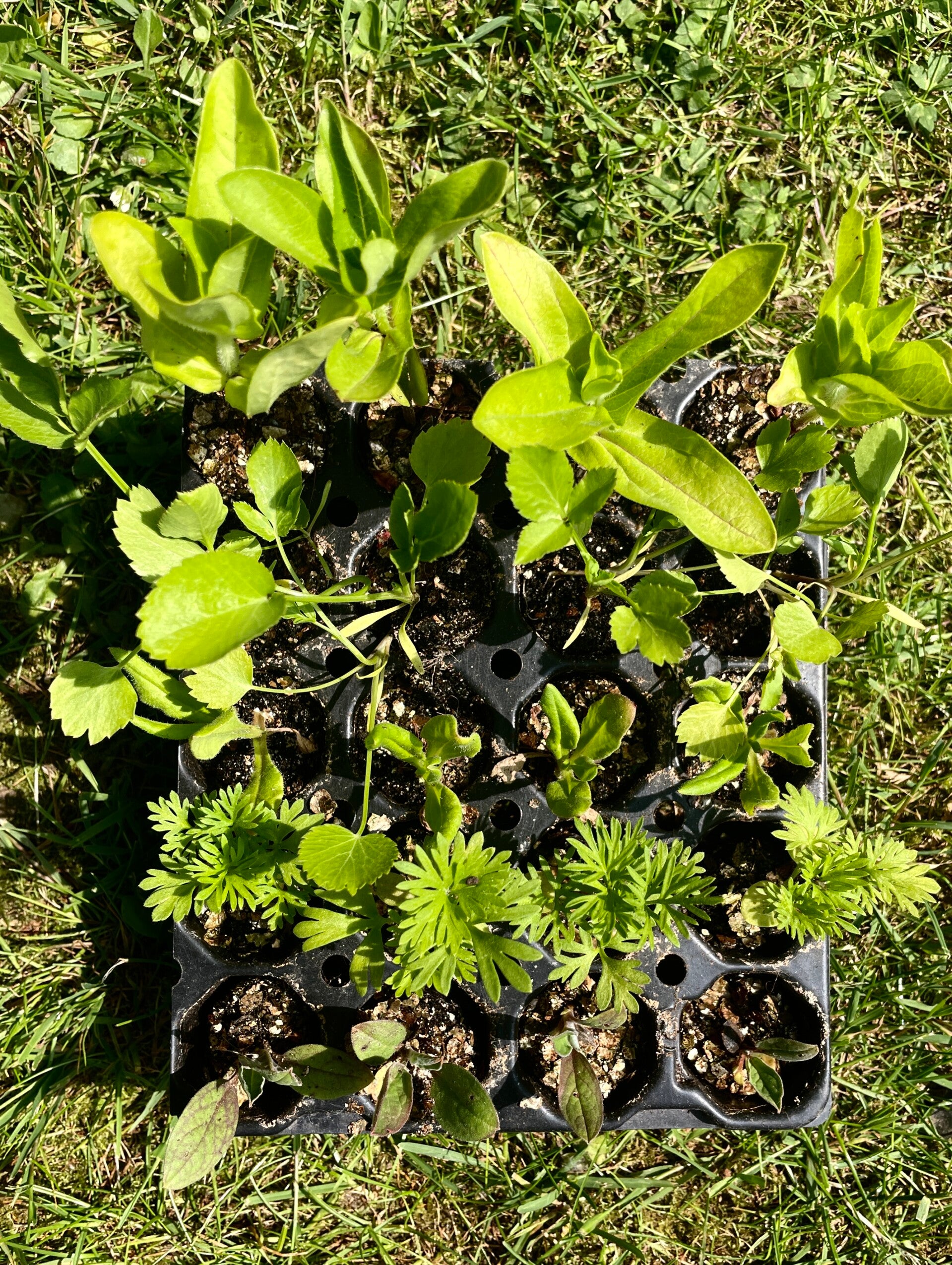 Traytje met 20 plantjes van 5 soorten plukbloemen.